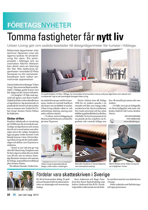 ARTICLE, SWEDISH MAGAZINE ‘SYDKUSTEN’, JUN - AUG 2013